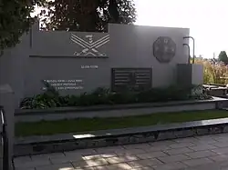 The monument to the fallen soldiers of the Sejny Uprising is located along the main avenue of the cemetery. It marks the collective grave of soldiers from the Polish Military Organization who died during the uprising on 25 August 1919.[7] The bodies of the fallen were brought from Sejny, and their burial took place on August 28. Among the eleven buried insurgents, one remains unidentified.[7]