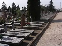 The section dedicated to soldiers of the Polish Military Organization is located along the main avenue of the cemetery. It contains 77 individual graves arranged in two rows, primarily of soldiers from the years 1919 and 1920.[8] Additionally, there are two graves of military personnel from World War II. Most of the burials are of unidentified soldiers.[8]