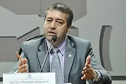 Ronaldo Nogueira de Oliveira (born 25 April 1966 in Carazinho) is a Brazilian administrator, pastor of Assembly of God Church and politician, affiliated to the Brazilian Labor Party. Currently, is discharged federal deputy and minister of Labour and Social Security of Brazil since 12 May 2016, appointed by president Michel Temer.[1]