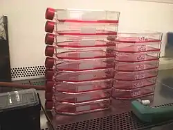 - ^ a b Sophie A. Leliévre (2015): "Cell Culture Basics 11: Adding medium to a culture flask with attached cells". Lab technique training video produced by Purdue University, uploaded to YouTube.com on 2015-09-23. Accessed on 2020-02-21.