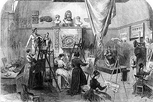 Many of the students of the Female School during the 1840s and 1850s moved on from Gower Street to study in the more advanced classes, and some of them returned, over the course of the 1850s, to the Female School of Art in Gower Street as teachers. Others were sent to head up the female branches of government art schools in Edinburgh (Susan Ashworth) and Dublin (Mary Julyan). In 1860 the Female School of Art was put on the same financial basis as other branch Schools of Design, resulting in a reduction in its public subsidy and necessitating a change of location and management while it remained affiliated to the national institution. These arrangements continued until 1909 when it was transferred to the control of London County Council, initially via the Central School of Art and Design (now part of the University of the Arts London), with which it was merged from 1914.[1]