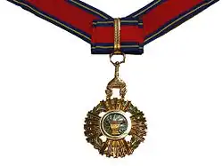 The Royal Order of Sahametrei (Khmer: គ្រឿងឥស្សរិយយសលំដាប់សហមេត្រី, Krœăng Ĕssârĭyôyôs Lumdăb Sâhâmétrei) is a chivalric order conferred by the government of the Kingdom of Cambodia. The Royal Order of Sahametrei was instituted in three classes on 9 September 1948 and was expanded to five classes on 23 August 1956. The order was not used during the Khmer Rouge period and was reinstated on 5 October 1995 by Royal Decree No. 1095/01.[1] It is conferred primarily on foreigners who have rendered distinguished services to the King and to the people of Cambodia, particularly in the field of external relations and diplomatic services or, as a token of friendship.