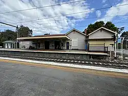 In 1920, the current station building on Platform 1 opened, after the original station building was destroyed by fire in 1919.[4] It opened with a tile roof in the "Gisborne style" and, in 1936, a new waiting shed and ticket office replaced earlier structures on Platform 2.[5]