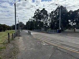 The route 58 tram stop at Royal Park station, on the south side of Poplar Road, October 2024
