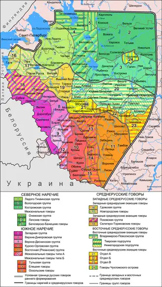Russian dialects and territorial varieties are divided in two conceptual chronological and geographic categories:[1]