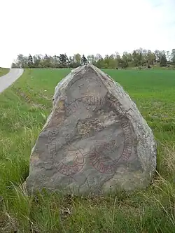 Sö 139 is a Viking Age runestone in granite inscribed in Old Norse with the Younger Futhark runic alphabet. It is located 3.5 m east-north-east of Sö 140 along the road between Lid and Aspa in Ludgo parish, in Nyköping Municipality, in Södermanland.[1] Both stones are placed at the southern side of the road next to the brook at Korpbro.[2] It is 1.48 m tall and 1.36 m wide.[3] The style is tentatively categorized as Pr3.[1] It is unusual because it was raised in memory of a woman.