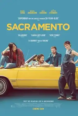 Sacramento is a 2024 American road comedy film directed by Michael Angarano, who wrote the screenplay with Chris Smith. It stars Michael Cera, Michael Angarano, Maya Erskine and Kristen Stewart.