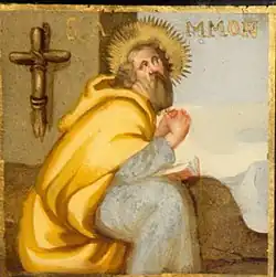 Ammon, Amun (Coptic: Ⲁⲃⲃⲁ Ⲁⲙⲟⲩⲛ), Ammonas (Ancient Greek: Ἀμμώνας), Amoun (Ἀμοῦν), or Ammonius the Hermit (/əˈmoʊniəs/; Greek: Ἀμμώνιος) was a 4th-century Christian ascetic and the founder of one of the most celebrated monastic communities in Egypt.[2] He was subsequently declared a saint. He was one of the most venerated ascetics of the Nitrian Desert, and Athanasius of Alexandria mentions him in his life of Anthony the Great.