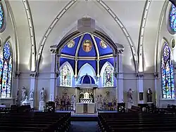 The first renovation of the cathedral happened in 1944, when stenciled designs were painted in the sanctuary and apse.[4] In 1958, during the second renovation, the main altar was preserved, but the stenciling was covered up and two sacristies were removed.[4] During the third renovation in 1980, a screen was installed in the sanctuary and the tabernacle moved to the side.[4] The fourth renovation began in 2007.