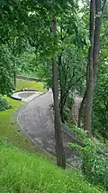 A street which passes through the park's hilly landscape on the eastern side is the cobblestone Saint Volodymyr Descent. At the park's northern end, the Kyiv Funicular[5] serves (mostly for tourists) as a transport connection between Kyiv's Upper Town neighborhood and the historic commercial district of Podil. As an alternative to the funicular, and adjoining it, is a long staircase. Across the funicular tracks to the north a park zone extends onto the Old Kyiv Hill which separates the Upper city (Old Kyiv) from the Lower city (Podil). Ukrainian House is located near the park's southern border by the Three Saints Street (vulytsia Tryokhsvyatytelska). In the same vicinity is located the Institute of Philosophy.
