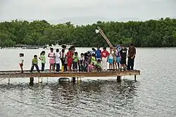 According to data provided by the Aguirre weather station, Salinas has a tropical savanna climate (Köppen: Aw). The annual average temperature of Salinas is 78.3 °F (25.7 °C), of which August is the hottest month with an average temperature of 81.0 °F (27.2 °C), and January is the coolest month with an average temperature of 75.2 °F (24.0 °C).[16] There are about 105 days with a temperature above 90 °F (32 °C) every year, and there are 4 hot days with a temperature above 95 °F (35 °C) every year; at the same time, there are also 4 nights with a temperature below 60 °F (16 °C) every year.[17] The annual precipitation in Salinas is 40.37 inches (1,025 mm), of which the rainy season is from May to November, and the precipitation accounts for about 82.5% of the whole year.[16] Among them, September is the wettest, and the precipitation can reach 6.85 inches (174 mm).[16] The temperature extremes ever recorded in Salinas ranged from 51 °F (11 °C) on December 3, 2013 to 100 °F (38 °C) on September 18, 2016.[17]