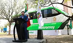 García unveiled an expansion of the Metrorrey network –Lines 4, 5, and 6– each designed as a monorail system on an elevated viaduct.[64] Amidst pushback from many in south Monterrey who preferred an underground system,[65] Line 5 was initially redesigned as an Autonomous Rail Rapid Transit system but ultimately cancelled in November 2024.[66][67] Construction for Lines 4 and 6 started in early 2023.[68][69]
