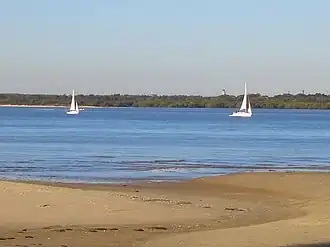 Sandringham is a quiet residential suburb on the western shore of Botany Bay, at the mouth of the Georges River. Cook Park runs along the eastern and southern border and the beach stretches from Dolls Point to Sandringham Bay. The Georges River Sailing Club sits on the foreshore. A small group of shops is located at the intersection of Clareville Avenue and Russell Avenue, on the border with Sans Souci and Sandringham.