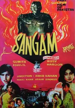 Sangam is a Pakistani Urdu film released in 1964. Directions by Zahir Raihan. It is stars Rosy Afsari, Haroon, Sumita Devi, Khalil. It was the first full-length colour movie made in Pakistan.[1][2]