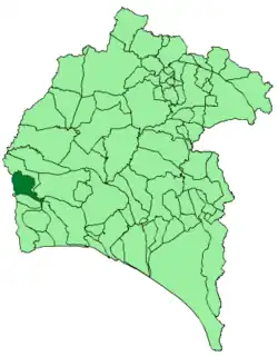 Sanlúcar de Guadiana is a localidad in the province of Huelva, Andalusia, Spain, situated near the Portugal–Spain border, 50 kilometres (31 mi) from the city of Huelva. The inhabitants are known as Sanluqueños. The village borders the Guadiana River, which is tidal at this point, but the higher parts of the village rise to an altitude of 149 metres (489 ft).