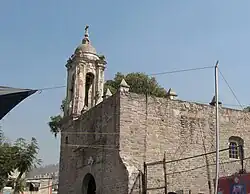 Parish of Santa Cecelia Acatitlan built partially with materials from the destroyed pyramid.