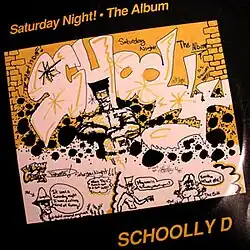 - Saturday Night! – The Album [front and back cover and record stickers] (Media notes). Schooly D. Schooly-D Recordings. SD-117.