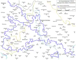 The Schönhengstgau was separated from the closed German-speaking area by a Czech-populated strip near Hohenstadt and around Senftenberg.[10] Before the Second World War, over 126,000 residents lived in the 148 communities, including the six towns of Zwittau, Brüsau, Mährisch-Trübau, Landskron, Hohenstadt and Müglitz, 84% of whom were German.[11]