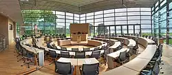Since 1950, the Landtag convenes in the Landeshaus in Kiel, which was built in 1888 as the Royal Marine Academy.[1] During the Nazi era, the Landeshaus served as the seat of the German Navy's Baltic Sea Command.[1] Up to 1950, the Landtag convened in Lübeck, Flensburg and Eckernförde as well as in Kiel.[1] Since its renovation in 2003, the Landtag sits in a new chamber in the Landeshaus.[1]