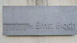 Memorial plaque on the house of Ernst Bloch (after a drawing by the Leipzig artist Ulf Puder)