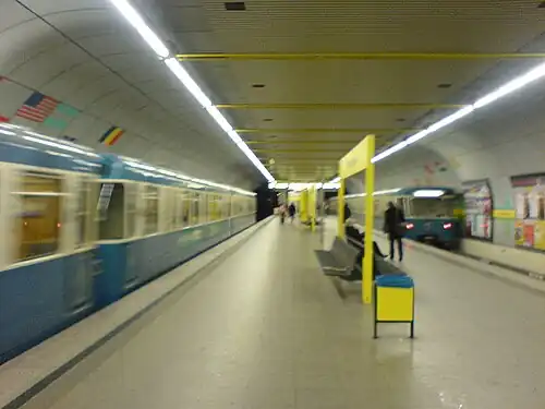 Schwanthalerhöhe is a Munich U-Bahn station in Munich on the U4 and U5 of the Munich U-Bahn system.