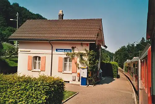 Schwendi bei Heiden railway station (German: Bahnhof Schwendi bei Heiden) is a railway station in Heiden, in the Swiss canton of Appenzell Ausserrhoden. It is a station on the Rorschach–Heiden mountain rack railway line of Appenzell Railways. Trains stop only on request.