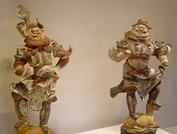 The Tang Chinese period employed complex chemical formulas for an array of different purposes, often found through experiments of alchemy. These included a waterproof and dust-repelling cream or varnish for clothes and weapons, fireproof cement for glass and porcelain wares, a waterproof cream applied to silk clothes of underwater divers, a cream designated for polishing bronze mirrors, and many other useful formulas.[43] The vitrified, translucent ceramic known as porcelain was invented in China during the Tang, although many types of glazed ceramics preceded it.[44][45]