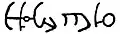 The complete reading may be "Eshkingil, lord of (the people) such-and-such" or "Eshkingil, son of so-and-so, the lord".[2] "Eshkingil" (, εϸκιγγιλο, Eškiŋil) may be a title consisting in the Turkic prefix Eš- meaning “comrade, companion of” and "-kenglu", the sacred sword and god ("Kenglu-shen") worshipped by the Xiongnu, so that "Eškiŋgil" could be a Hunnic name or title meaning “Companion of the Sword”, or even "Companion of the God of War".[8][1]