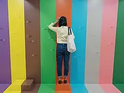 A "selfie museum" or "Instagram museum" is a type of art gallery or installation designed to provide a setting for visitors to pose in photographs to be posted on social media sites such as Instagram. Typical features of exhibits in a selfie museum include colorful backdrops, oversize props, and optical illusions such as anamorphosis.