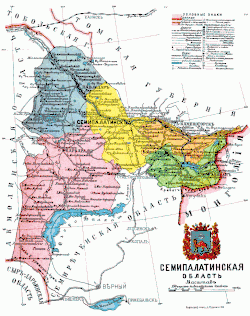 The Semipalatinsk Oblast (Russian: Семипалатинская область) was an oblast (province) of the Russian Empire and the early Russian SFSR. From 1882 to 1917 it was part of the Governor-Generalship of the Steppes. It roughly corresponded to most of present-day northeastern Kazakhstan. It was created out of the territories of the former Kazakh Khanate. The first Russian settlement in the area dates from 1718, when Russia built a fort beside the river Irtysh, near the ruins of an ancient Buddhist monastery, where seven buildings could be seen. The fort (and later the city) was named Semipalatinsk (Russian for "Seven-Chambered City") after the monastery. The city is now known as Semey.