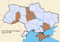 - ^ "Сім чудес України визначено! (Ukraine's Seven Wonders are named)". Seven Wonders of Ukraine (in Ukrainian). Archived from the original on 2007-11-11. Retrieved 2007-11-13.