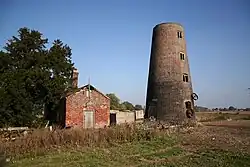 At the east of the hamlet on Drove Road are the Grade II listed late 18th-century remains of the tower mill.[9] The mill was working with four sails until the 1920s, but by the middle of the 1930s it had lost its roof and become a ruin.[10]