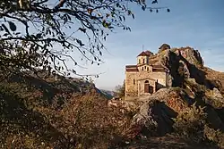The Shoana church (Russian: Шоанинский храм, Ossetian: Суаны Уастырджы, Уасгергийæ Соани, romanized: Swany Wastyrdži, Wasgergijæ Soani[1]) is a Christian church that belongs to the historical Alanian Diocese. The church was built at the end of the tenth century, and is located on the territory of modern Karachay-Cherkessia Republic, Russia. The building has a crossed-dome plan, with an inscribed cross, which is a variation of the North Zelenchuk Church.