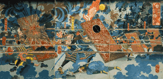 On 27 July, the Japanese attacked the same weakened wall area with the "tortoise shell wagons." Still, a heavy thunderstorm prevented Korean attempts to incinerate the Japanese by dropping torches soaked in fat.[13] With the aid of a rainstorm, the Japanese sappers broke down a section of the wall dislodging its foundations, and a great rush broke out with the samurai pushing each other down as it was a great honor to be the first samurai to enter a fortress.[13] Goto Mototsugu, a retainer of Kuroda Nagamasa, was about to be the first samurai to enter Jinju when Iida Kakbei, a retainer of Kato Kiyomasa, threw the Nichiren flag into the breach to claim that honor for himself.[13] The Korean garrison was out of ammunition and was short of swords, so many Koreans fought with wooden sticks against the surge of samurai armed with katanas. Hwang Jin survived two shots in the chest but kept fighting until he succumbed to his wounds, crumbling the defenders' morale.[13]