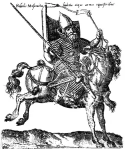 Given the large-scale preparations, Moscow had a large army. Sources at the time report that an army of 360,000 moved on the city, but these figures are largely exaggerated.[8] A collection of documents on the campaign, "Polotsk book" (Russian: Полоцкая книга), reports that there were 31,206 people in the entire army.[9] Modern authors assume that more reinforcements from the Tatars arrived immediately at the time of the siege; according to this, the total number was 45,000.[5][10]