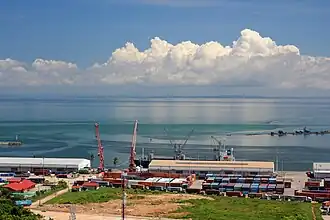 Sihanoukville Autonomous Port (Khmer: កំពង់ផែស្វយ័តក្រុងព្រះសីហនុ; French: Port autonome du Sihanoukville, PAS) is a government agency and state corporation of Cambodia and Sihanoukville that operates and governs the country's sole deep water port.[1] In Sihanoukville, on the Bay of Kampong Som of the Gulf of Thailand in south-western Cambodia. The port was inaugurated in 1960 as construction of the Old Jetty's four berths had begun in 1955.[2]: 18 [3]