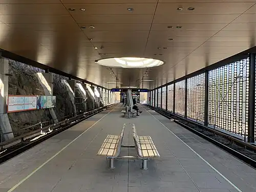 Siilitie metro station (Finnish: Siilitien metroasema, Swedish: Igelkottsvägens metrostation - "Hedgehog Way") is a ground-level station on the Helsinki Metro.[2] It serves the northern part of the district of Herttoniemi in East Helsinki. There are 117 bicycle and 111 car parking spaces at the station.[3] Both lines M1 and M2 serve Siilitie.