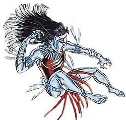 Silverclaw's last major appearance is in the Hulk story arc "Mayan Rule", where she helps battle the Mayapan, a group of Inhumans who pose as gods.[24]