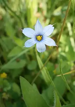 Sisyrinchium is a large genus of annual to perennial flowering plants in the family Iridaceae. Native to the New World, the species are known as blue-eyed grasses. Although they are not true grasses (Poaceae), they are monocots.[2]