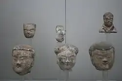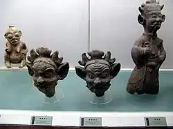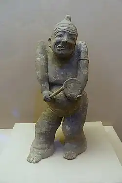There were many amusements in the cities which could attract audiences rich and poor, such as trained animals performing tricks, cockfighting and caged animal fights between tigers, horse racing, puppet shows, musical performances with dancing, acrobatic feats, and juggling.[131] Wealthy families could afford their own house choirs and five-piece orchestras with bells, drums, flutes, and stringed instruments.[132] Gambling and board games such as liubo also provided entertainment.[133]