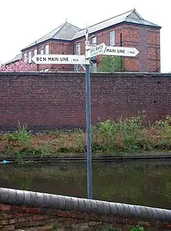 The Soho Loop is a 1.2-mile (2 km) section of the eighteenth-century Old BCN Main Line canal in Birmingham, England, about 1.2 miles (1.9 km) west of the city centre, which opened to traffic on 6 November 1769, and was bypassed in September 1827 by a straight 0.75-mile (1.2 km) section of the New BCN Main Line.[1] Much of the 110 acres (45 ha) of enclosed land is occupied by the 49 acres (20 ha) of Birmingham's City Hospital, and the canal itself serves private residential moorings at Hockley Port Basin via a 310 yards (280 m) branch extending north-eastwards. This is all that remains of the former Soho Branch that once served Matthew Boulton's Soho Manufactory. There is pedestrian access to a tow path for the entire length of the outside of the loop, which skirts the southern boundary of Winson Green Prison and twice passes underneath the Stour Valley Railway. The Centre of the Earth environmental education centre is adjacent to the canal and has a long wharf frontage.