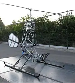 The Solution F/Chretien Helicopter is a coaxial electric helicopter prototype designed and built by Pascal Chretien for the Solution F company in France. The aircraft is intended to be a demonstration and exploration of several key electrical power technologies for use in future hybrid helicopters.[1] The helicopter is the first all electric helicopter to hover out of ground effect[2][3][4][5][6] and set a Guinness World Record on August 12, 2011. It received an IDTechEx Electric Vehicles Land Sea & Air award in 2012.[7][8] The prototype[9] is on permanent display at the Musée de l'air et de l'espace in Paris le Bourget, France[10]