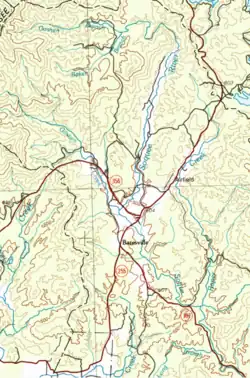 • Hazel Creek - The Hazel Creek basin is the largest sub-basin watershed area with 31.9 square miles. The city of Demorest sits entirely within this watershed. Portions of Mount Airy and Cornelia also drain to this basin, specifically Camp Creek, which arises in Mount Airy City limits and becomes the primary drinking water supply for the city of Cornelia at the Camp Creek Reservoir. Law Creek, Little Hazel, Lick Log Creek and Camp Creek are the primary tributaries to this sub-basin. This portion of the Soque River watershed is designated by the United States Geological Survey as sub-watershed HUC 031300010205, and is named Hazel Creek sub-watershed.[5]