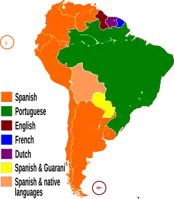In contrast to other European colonies in the Americas which mainly used the labor of African slaves, Spanish colonists mainly enslaved indigenous Americans. In 1750, the Portuguese Crown abolished the enslavement of indigenous peoples in colonial Brazil, under the belief that they were unfit for labor and less effective than enslaved Africans. Enslaved Africans were brought to the Americas on slave ships, under inhuman conditions and ill-treatment, and those who survived were sold in slave markets.[26] After independence, all South American countries maintained slavery for some time. The first South American country to abolish slavery was Chile in 1823, Uruguay in 1830, Bolivia in 1831, Guyana in 1833, Colombia and Ecuador in 1851, Argentina in 1853, Peru and Venezuela in 1854, Suriname in 1863, Paraguay in 1869, and in 1888 Brazil was the last South American nation and the last country in western world to abolish slavery.[27]
