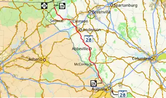 15. ^ "Overview map of SC 28 Bus. (Anderson)" (Map). Google Maps. Retrieved July 1, 2011.
