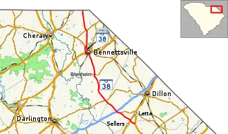 12. ^ "Overview map of SC 38 Bus. (Bennettsville)" (Map). Google Maps. Retrieved February 14, 2018.