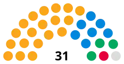 Since the last boundary changes in 2015 the council has comprised 31 councillors representing 20 wards, with each ward election one, two or three councillors. Elections are held every four years.[32]