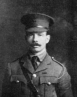 The 10th (Service) Battalion (1st Gwent), 11th (Service) Battalion (2nd Gwent) and 12th (Service) Battalion (3rd Gwent) were raised by the Welsh National Executive Committee as K5 or 'Pals battalions'. The 10th and 11th landed at Le Havre as part of the 115th Brigade in the 38th (Welsh) Division in December 1915 for service on the Western Front.[17][31][32] The 12th (Service) Battalion (3rd Gwent) was raised as a Bantam battalion and landed at Le Havre as part of the 119th Brigade in the 40th Division in June 1916 for service on the Western Front.[17][31][32] Welsh poet and language activist Saunders Lewis served in the 12th Battalion during the First World War.[34]