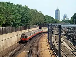 The Southwest Corridor or Southwest Expressway was a project designed to bring an eight-lane highway into the City of Boston from a direction southwesterly of downtown. It was supposed to connect with Interstate 95 (I-95) at Route 128. As originally designed, it would have followed the right of way of the former Penn Central/New Haven Railroad mainline (current Amtrak Northeast Corridor) running from Readville, north through Roslindale, Forest Hills and Jamaica Plain, where it would have met the also-cancelled I-695 (Inner Belt Expressway). The 50-foot-wide (15 m) median for the uncompleted "Southwest Expressway" would have carried the southwest stretch of the MBTA Orange Line within it, replacing the Washington Street Elevated railway's 1901/1909-built elevated railbed.[1] Another highway, the four-lane South End Bypass, was proposed to run along the railroad corridor between I-695 in Roxbury and I-90 near Back Bay.[2]