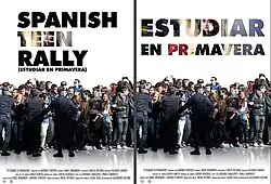 Spanish Teen Rally is a 2014 Spanish documentary film directed by Amparo Fortuny.[1][2] The film delves into the world of a group of teenagers whose protests in defense of Public Education triggered the so-called Valencian Spring.[3][4][5] It was the very first experience of protest for many of them and lead to their crash with reality.[6][7] Not only did these teenagers become the symbol of the student protests throughout Spain;[8] they also became a reflection of the youth's disenchantment facing an uncertain future in a country where the austerity policies are beginning to seriously affect society.[9][10][11]